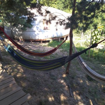 Pihenő a jurta előtt